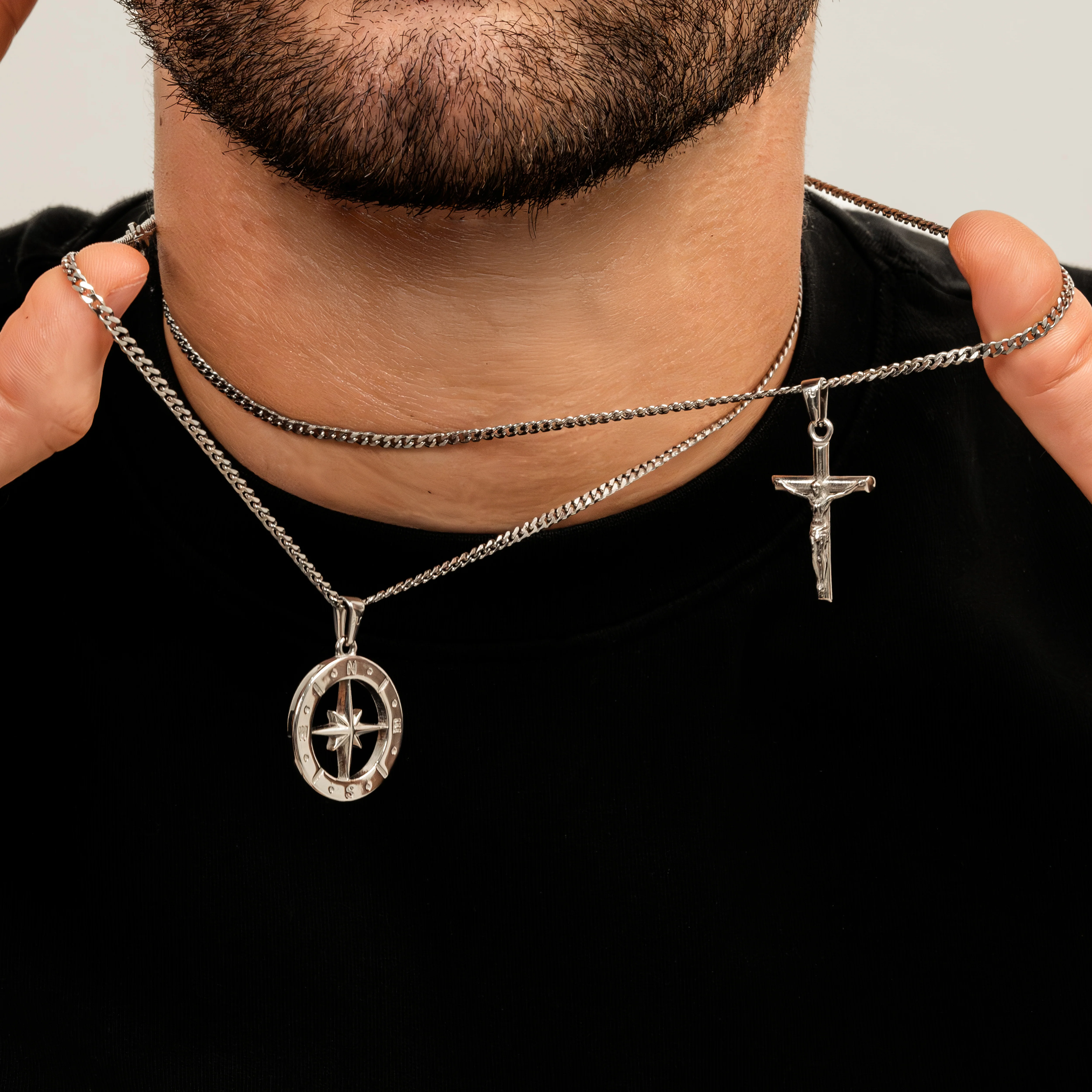 1 x Silver Cross and 1 x Silver North Star Necklace Bundle.
