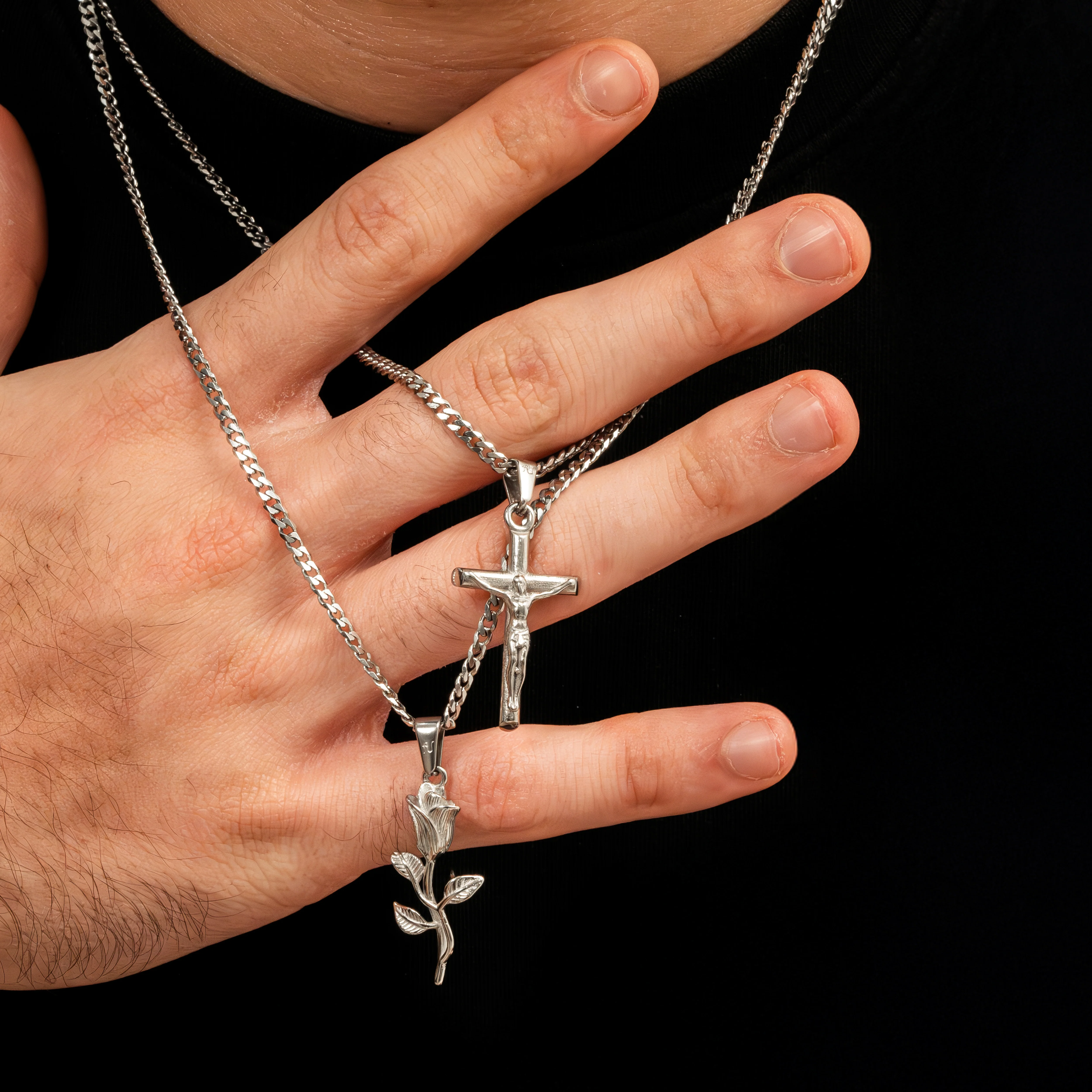 1 x Silver Cross and 1 x Silver Rose Necklace Bundle.